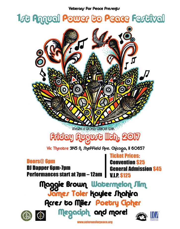 Veterans For Peace-Chicago-Power to Peace Festival at VIC Theatre Date: Friday, Aug 11, 2017